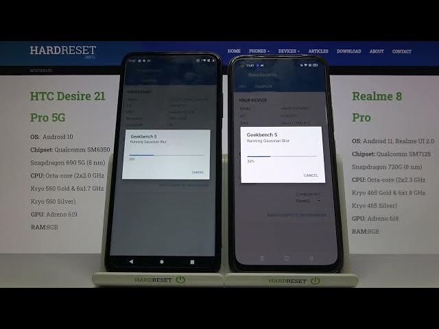 Hi there! Have you ever been wondering if HTC Desire 21 Pro or Realme 8 Pro has a better GPU performance? If you've been, then you should check out our new video! In today's video we're going to run some top mobile GPU performance benchmark test program Geekbench OpenCl on HTC Desire 21 Pro and Realme 8 Pro in order to compare their performance capacities. This video might be useful in case if you've been thinking about buying yourself a new HTC Desire 21 Pro or Realme 8 Pro, but can't decide which one has a better performance possibilities. So in a case like that, all you need to do is just watch this short video to the end, and decide for yourself if HTC Desire 21 Pro or Realme 8 Pro fits you best. If you find this tutorial useful, don’t forget to hit that like button, leave a comment and subscribe to our channel. Thanks for watching our video!