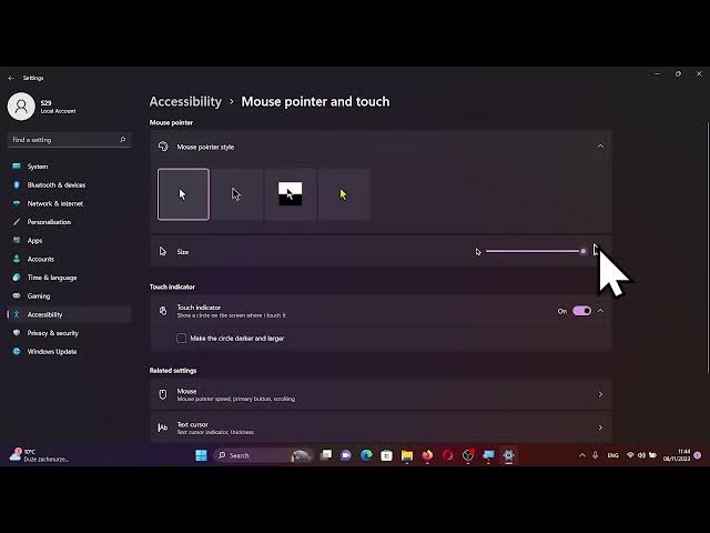 Within the accessibility menu, delve into the Mouse Pointer and Touch section, where a treasure trove of customization possibilities awaits.