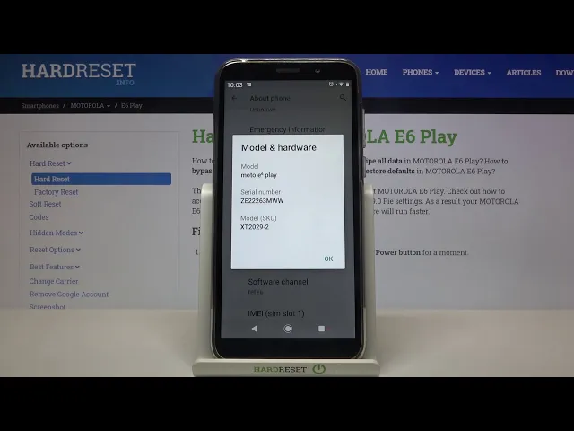 Learn more about MOTOROLA E6 Play https://www.hardreset.info/devices/motorola/motorola-e6-play/ If you would like to find out more technical specifications about your MOTOROLA E6 Play, then take a look at this guide! Throughout this guide, we will present the steps that are necessary to get to the proper section in which all information is stored. You’ll be able to check the full model name, baseband version, or kernel. So let’s follow all shown steps and successfully check device specifications. How to check Android version in MOTOROLA E6 Play? How to get access to specification in MOTOROLA E6 Play? How to read the system info in MOTOROLA E6 Play? How to check the hardware data in MOTOROLA E6 Play? #DeviceSpecs #SystemInfo #MOTROLAE6Play Follow us on Instagram ► https://www.instagram.com/hardreset.info Like us on Facebook ► https://www.facebook.com/hardresetinfo/ Tweet us on Twitter ► https://twitter.com/HardResetI Support us on TikTok ► https://www.tiktok.com/@hardreset.info Use Reset Guides for many popular Apps ► https://www.hardreset.info/apps/apps/