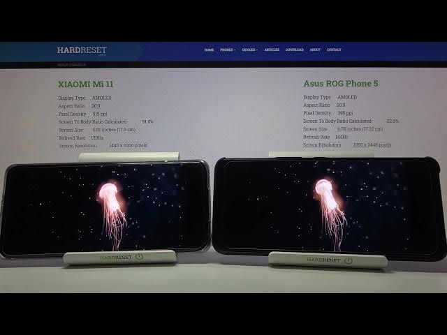 Learn more info about Xiaomi Mi 11: https://www.hardreset.info/pl/devices/xiaomi/xiaomi-mi-11/ Check out also more detailed info about ASUS ROG Phone 5: https://www.hardreset.info/pl/devices/asus/asus-rog-phone-5/ Come along with the present tutorial, where we present display Comparison of Xiaomi Mi 11 and Asus Rog Phone 5. Check out the color saturation, time reaction and other important parameters of both displays in order to decide which one will be best for you. Discover if displays of Xiaomi Mi 11 and Asus Rog Phone 5 are suitable to your own preferences. Follow us on Instagram ► https://www.instagram.com/hardreset.info Like us on Facebook ► https://www.facebook.com/hardresetinfo/ Tweet us on Twitter ► https://twitter.com/HardResetI Support us on TikTok ► https://www.tiktok.com/@hardreset.info Use Reset Guides for many popular Apps ► https://www.hardreset.info/apps/apps/